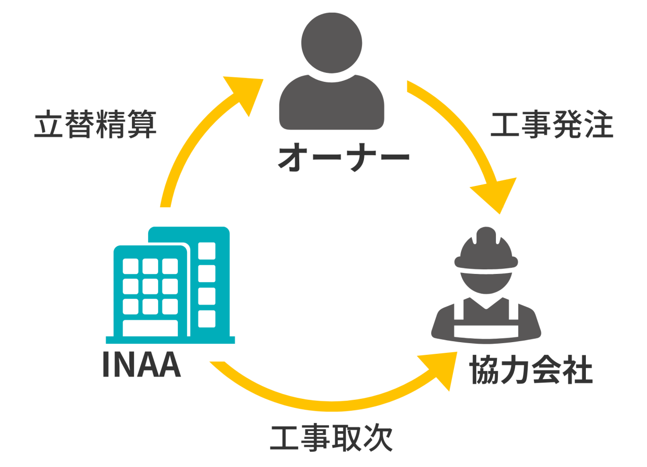 発注方法 | オーナー様から点検会社に直接発注 | オーナー様から大手管理会社へ発注 | オーナー様からINAAに発注いただく |